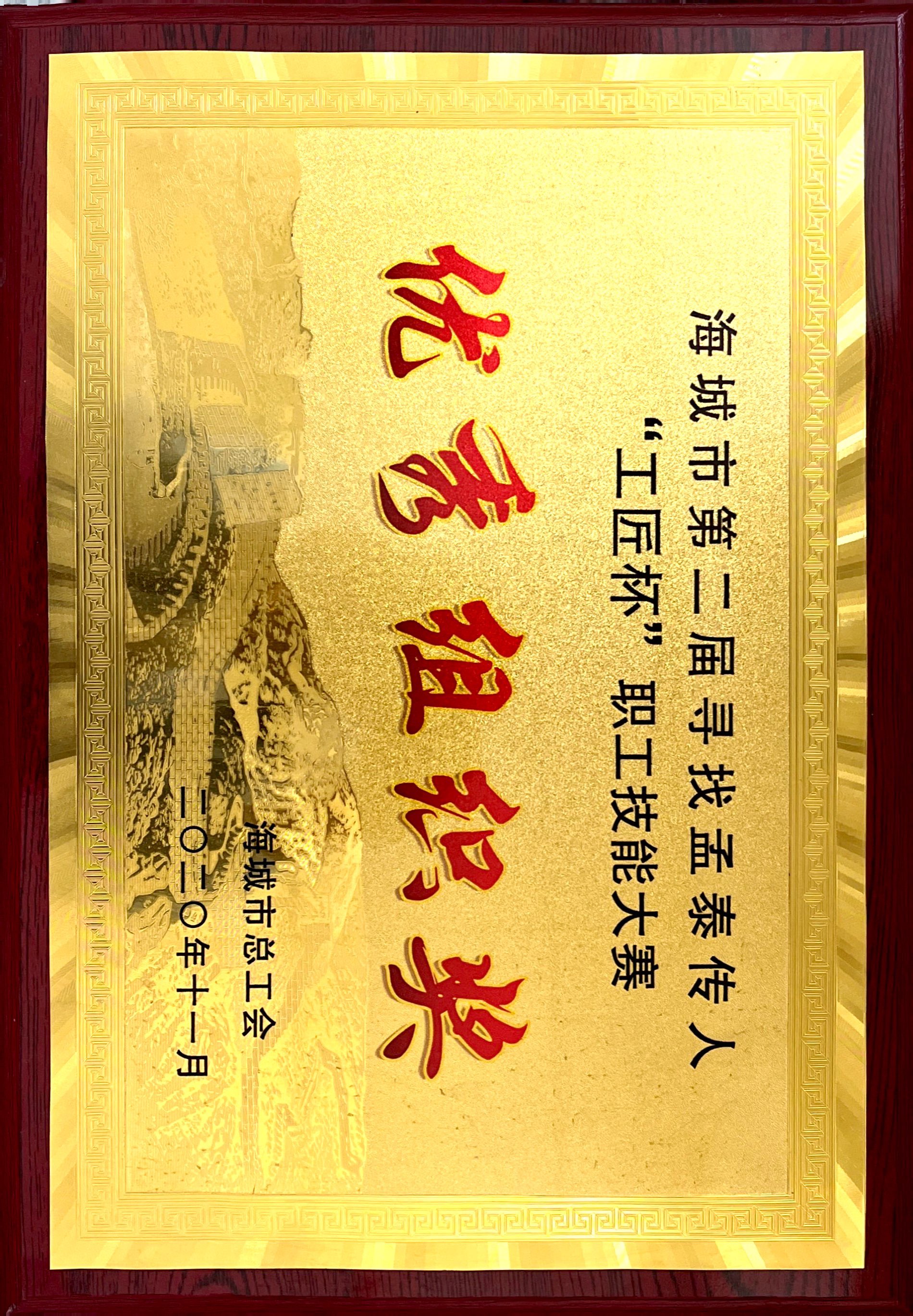 Excellent organization award of the second "craftsman Cup" employee skills competition for finding the heirs of Mengtai in Haicheng