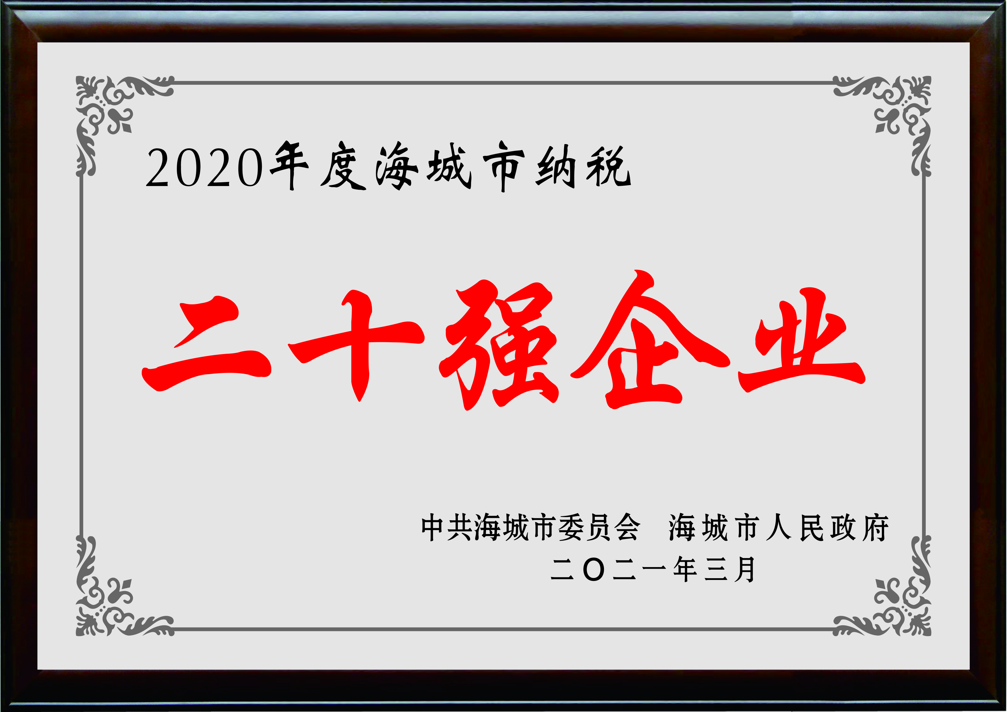 2020 Haicheng top 20 tax paying Enterprises