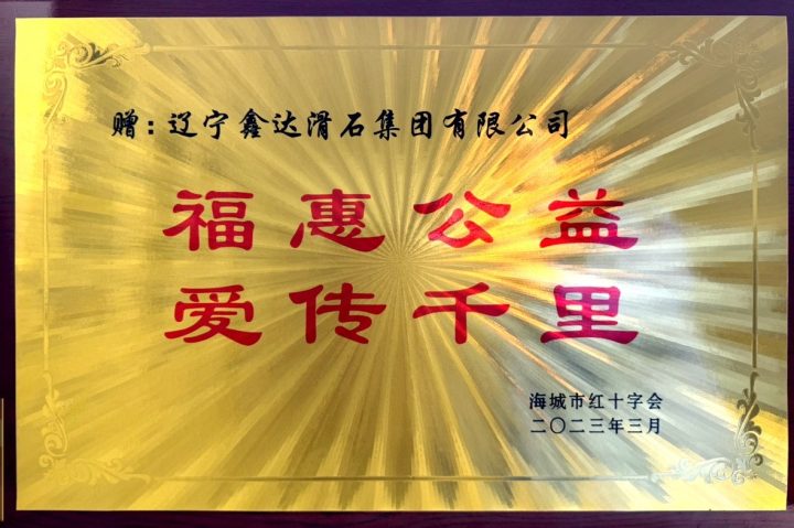 Haicheng Red Cross Society presented Xinda talc with "fortune, wisdom, public welfare and love spread thousands of miles"