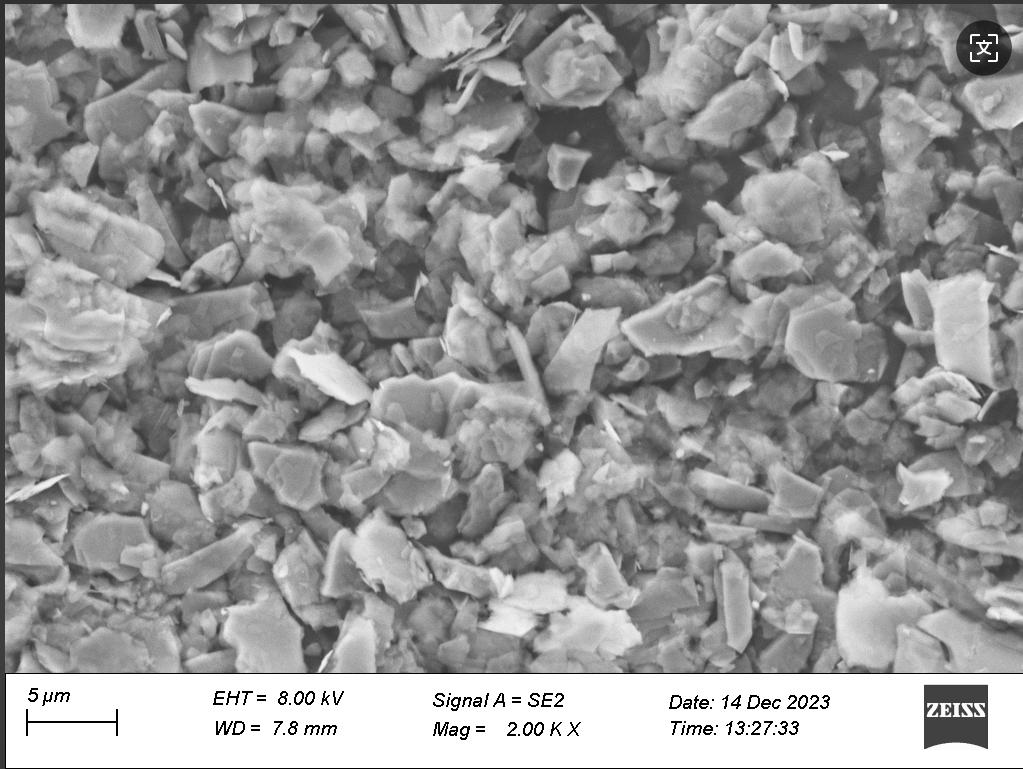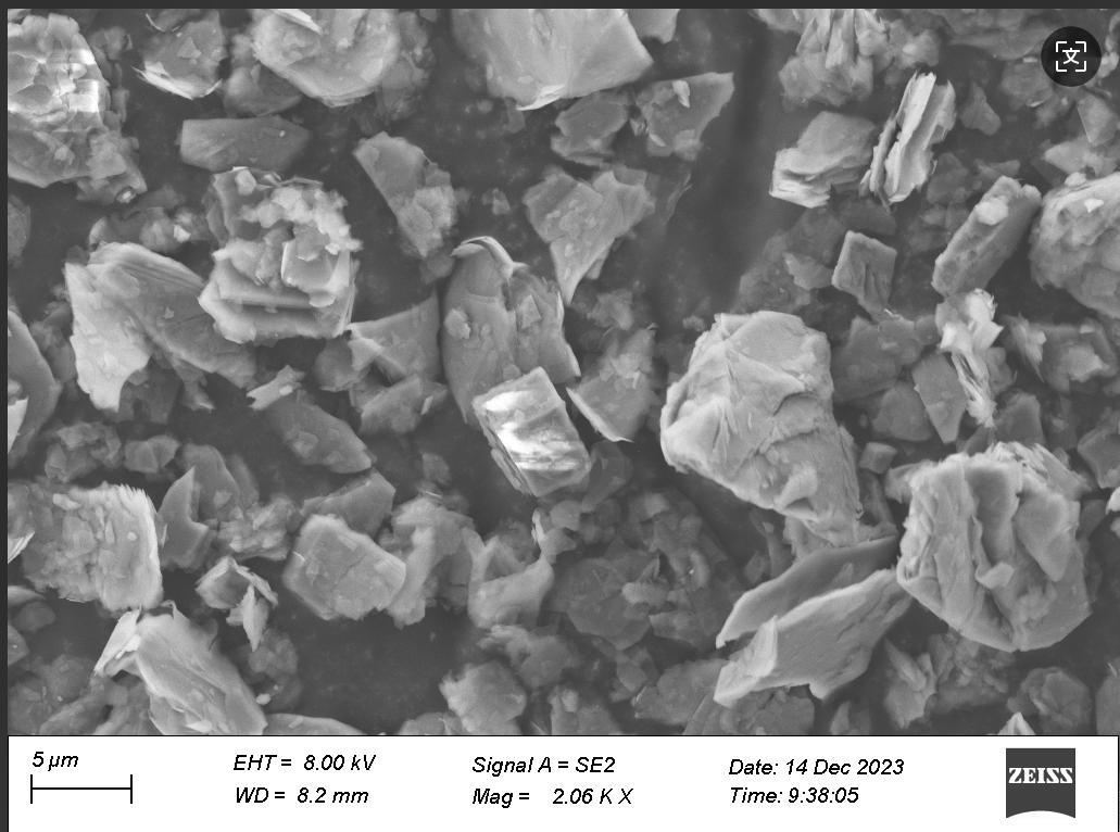 (Note: This is a schematic description, and the actual image should show the morphological characteristics of talc powder produced by other manufacturers in the industry under electron microscopy.)