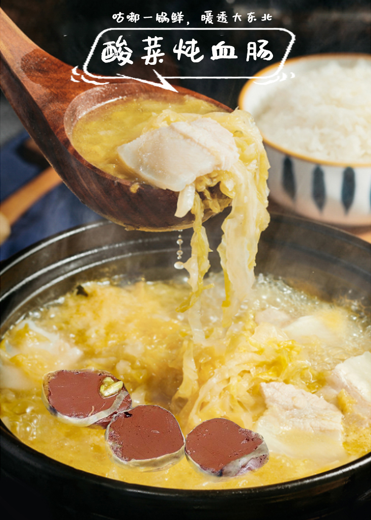 Stewed Blood Sausage with pickled Chinese cabbage -- Gudu is a pot of fresh food that warms the Northeast