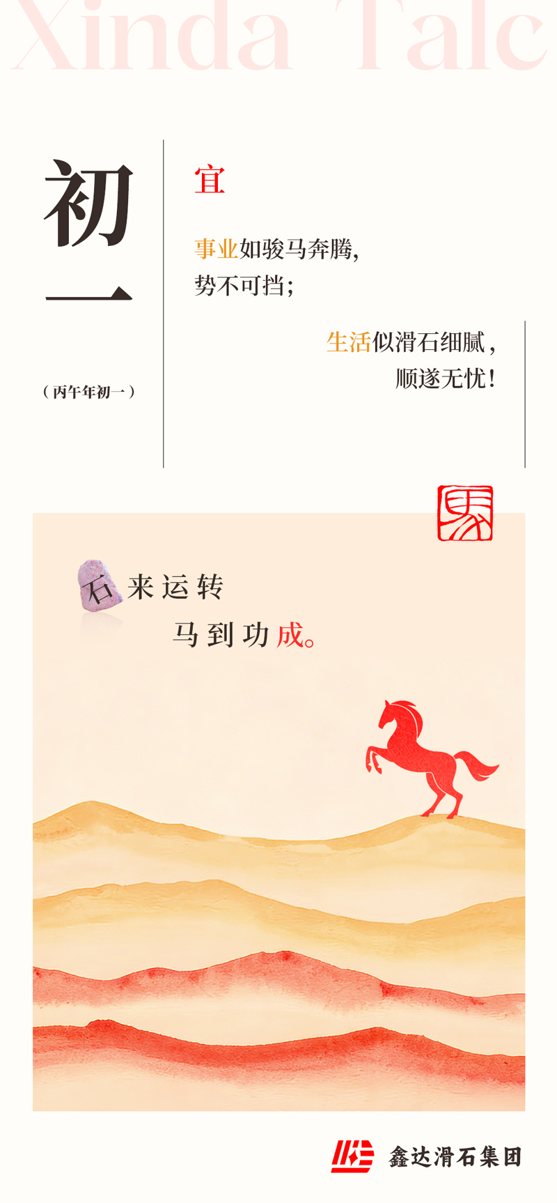 On the first day of the lunar new year, I wish you 'stone' - like success and 'horse' - like achievement!