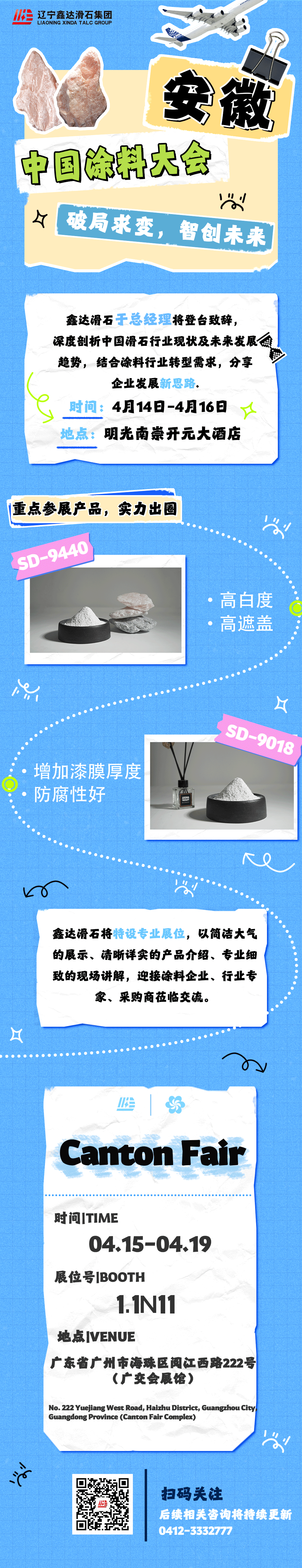 Liaoning Xinda Talc is set to launch two linked exhibitions, making a high-profile appearance at two major industry events in Mingguang, Anhui and Guangzhou. With professional expertise, we empower the coating industry, explore business opportunities and promote development together with industry peers!